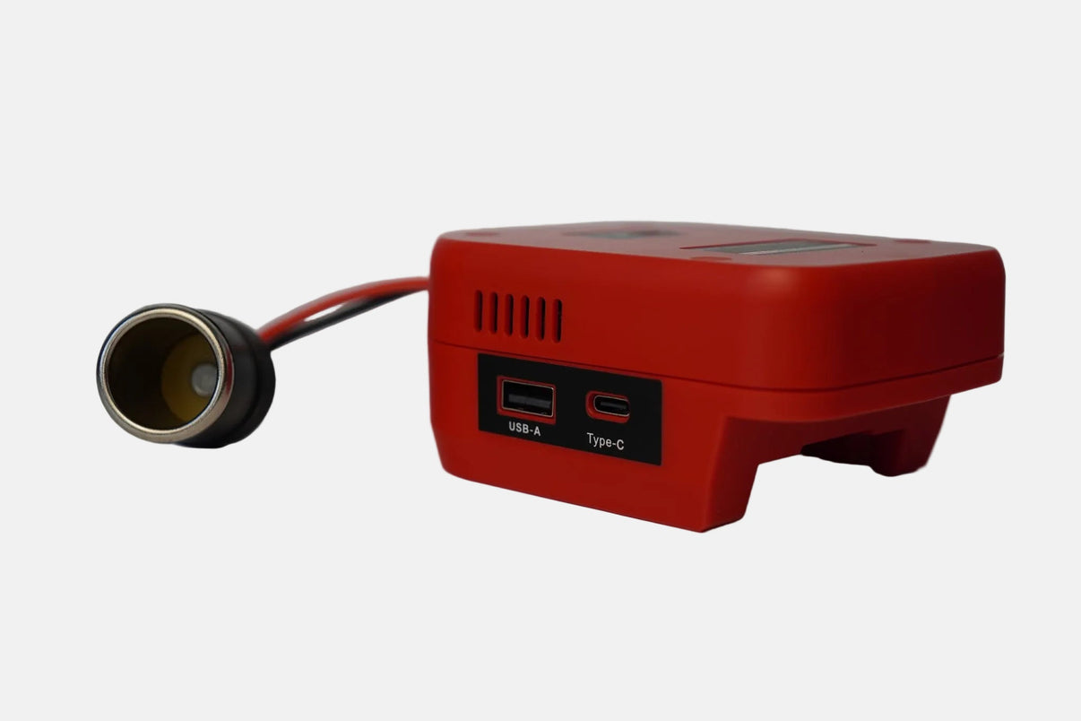 Simply run your heater off of a M18 Milwaukee, Dewalt or Mikita Battery using this convertor. Needs to be used in combination with a 12V DC Outlet Adapter found in 'Accessories'